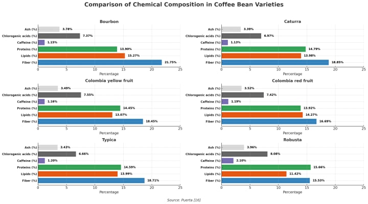 Robusta is renowned for its higher caffeine content compared to Arabica. This higher caffeine level, approximately 182 mg per 100 g of green coffee beans, contributes to its stronger, more bitter flavor and robust stimulating effects. This makes Robusta a preferred choice for espresso blends, offering a powerful kick to coffee lovers (Badmos et al., 2019).