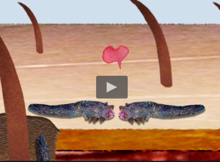 These creepy-crawlies are eight-legged, mostly transparent and microscopic in size, measuring about 0.01 inches apiece. They live near the roots of facial hair follicles on both men and women, hidden away inside your pores.