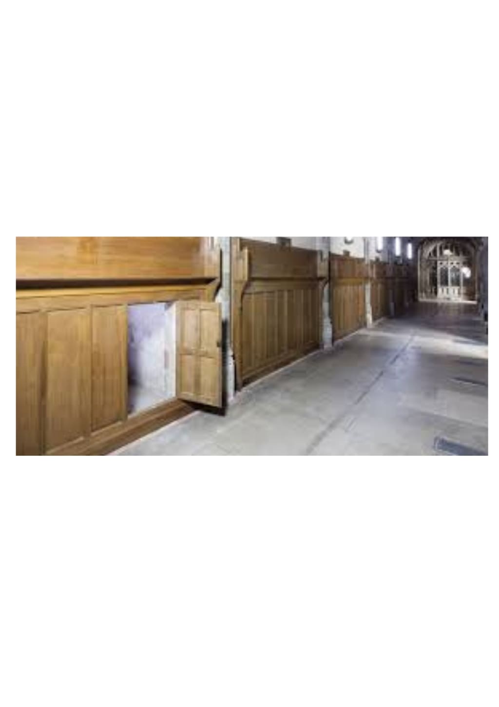 In an attempt to preserve the restored access, the workers carved a small wooden door into the panelling in the adjacent hallway, but the result turned out to be too discreet. With the passing of time, the door was forgotten and historians thought that the 1950s repair job had blocked access entirely.