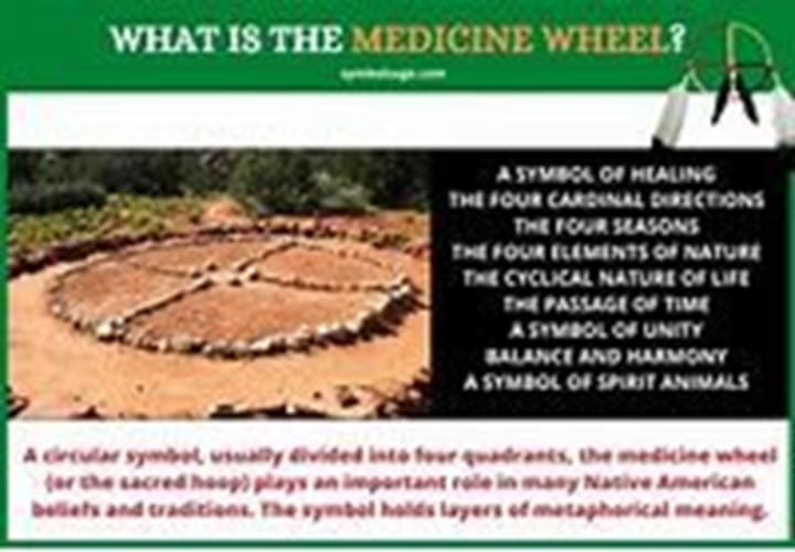 The Medicine Wheel is said to represent harmony and connections and is considered a major symbol of peaceful interaction among all living beings on Earth. The medicine wheel originates from Native American traditions and is also referred to as a Sacred Hoop. The medicine wheel represents the sacred circle of life, its basic four directions, and their associated elements. Other tribes have different interpretations of the medicine wheel. Do not think that all tribes are alike with these teachings as they are not.