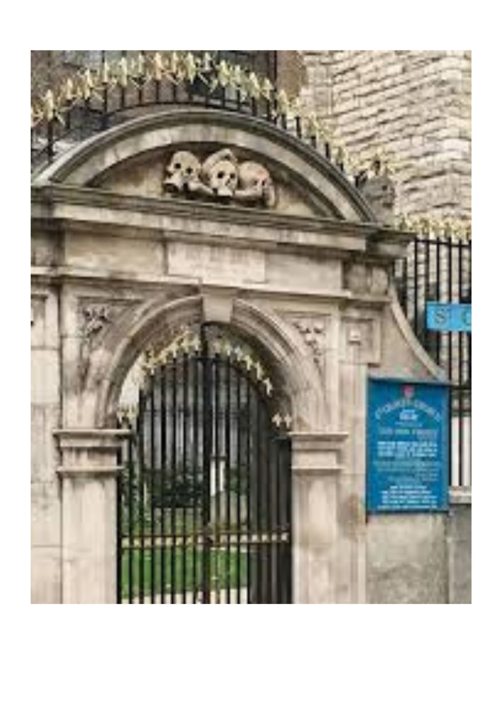 The churchyard is swollen above the surrounding ground level by a massive number of bodies buried within. Today, the gardeners are constantly unearthing human bones.