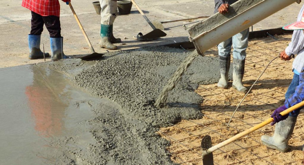 Pouring the Concrete: Once the site is prepped, the concrete is poured and smoothed out.