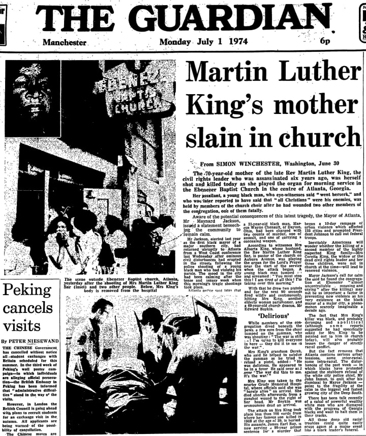 On June 30, 1974, Alberta Williams King played “The Lord’s Prayer” on the organ at Ebenezer Baptist Church in Atlanta where her father, husband, and son all previously served as pastors. Alberta, her daughter, grandkids, and other family members faithfully attended church and read the Bible.