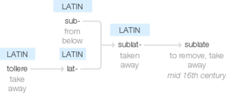 The Oxford English dictionary defines sublation as - 'assimilate (a smaller entity) into a larger one.' The example of its use in a sentence provided is "fragmented aspects of the self the subject is unable to sublate".Here, I think it is important to point out the common Anglo-Saxon conflation of sublation and subsumption.