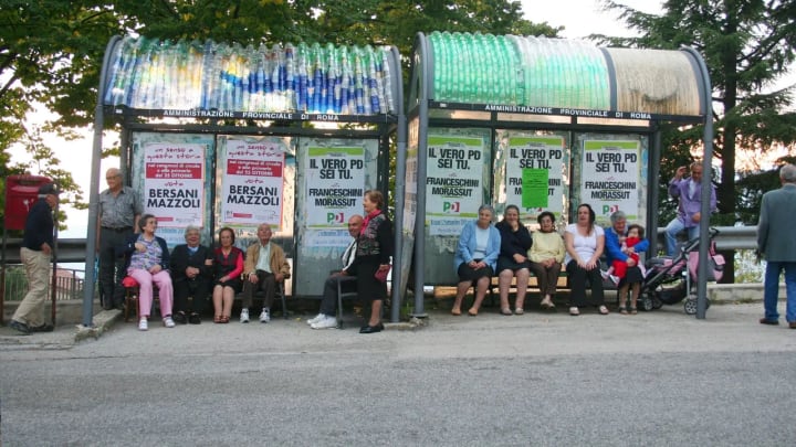 Köbberling has also found that discarded raw sheep wool acts as superb wall insulation and pollution filter, and has turned thousands of plastic bottles and cups discarded at the Berlin Marathon into material for bus shelter roofs.