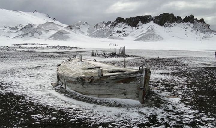 They used a helicopter to move from the ship to the mainland on the island, but suddenly, researcher Allan Crawford discovered a lifeboat lying alone in a lagoon.