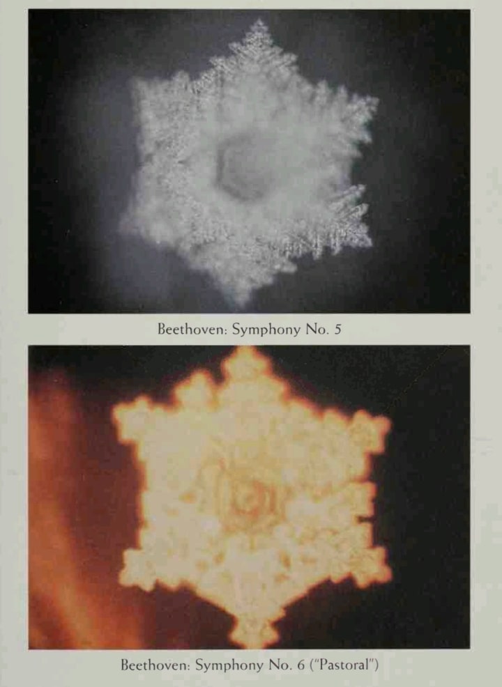 In contrast, the water exposed to violent heavy metal music resulted in fragmented and malformed crystals at best.