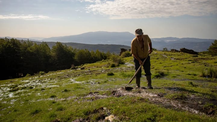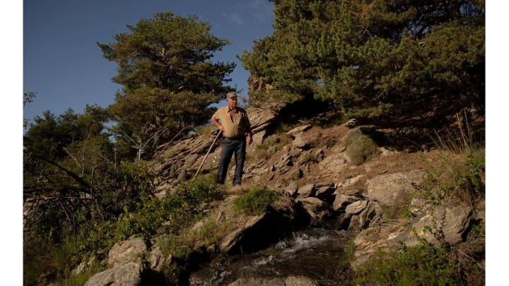 In the warm air of an early-June morning, Jose Antonio Peña walks along a channel of gushing water in the Sierra Nevada of southern Spain. Traversing the rocky terrain and ducking beneath boughs of pine, he eventually reaches a grassy meadow on his left. The ancient artificial channel, known as an acequia, empties into the meadow, where its water branches into meandering streams that soak into the mountainside.