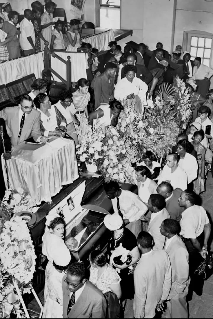 Mamie decided on an open-casket funeral for Emmett because she wanted the world to see what two racist men had done to her son. Hundreds of people gathered to pay their final respects to Emmett.