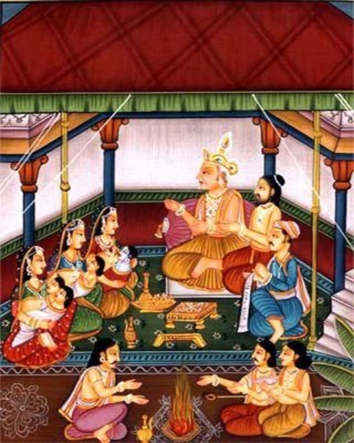 Despite his many achievements, King Dasaratha deeply regretted that he did not have a son to succeed him and ensure the continuity of dharma in his kingdom. He approached his guru, Sage Vasishta, and expressed his regret, saying, "Gurunatha! By their blessings the slave conquered the ten chariots from the ten directions in this world and got the name Dasaratha. I defeated Sambaran and helped Indra. But their servant did not bear child. Father in my ears listening to the sounds of the lyre! He regretted saying that he had not had the privilege of hearing the words of Masala."