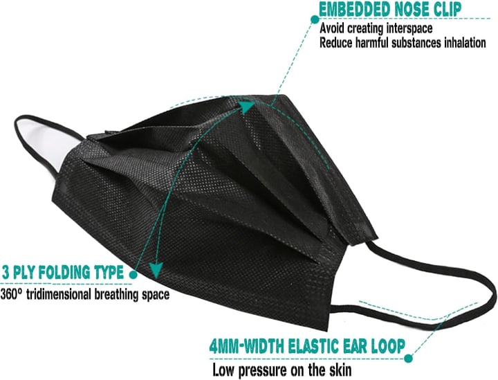 Featuring a 3-ply construction, disposable face masks provide excellent protection against airborne particles while remaining breathable and comfortable to wear. The embedded nose clip ensures a secure fit, minimizing fogging on eyeglasses and enhancing overall comfort. Additionally, the high elastic ear loops offer a snug yet gentle fit, making them suitable for extended wear without causing discomfort.