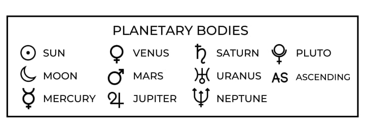 Planetary bodies show significant points in astrology using planets that can (usually) be seen with the naked eye, or using a telescope. There's vast information on each main planet, and more on smaller planets outside of the eleven covered here. This is a "crash course" to get you started on your journey in astrology and Zodiac interpretation.