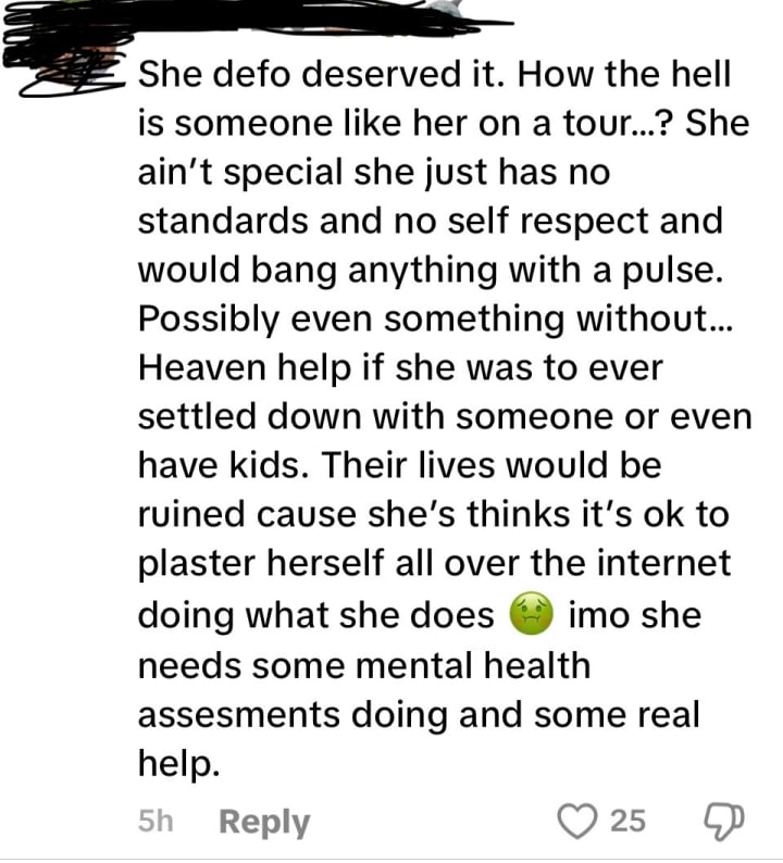 That slope begins with moral judgment. Many of the comments I saw used language like “she’s set feminism back” or “she’s degrading women.” That is the same logic that underpins so-called honour killings: when a woman’s choices are branded immoral, someone believes they are justified in punishing her. Around the world, women are beaten, attacked, and murdered for being seen as dishonourable. Sometimes that dishonour is as small as speaking to a man, refusing an arranged marriage, or dressing differently. The Bonnie Blue comments may look harmless compared to murder, but they share the same foundation: the belief that violence is acceptable when a woman fails to conform.