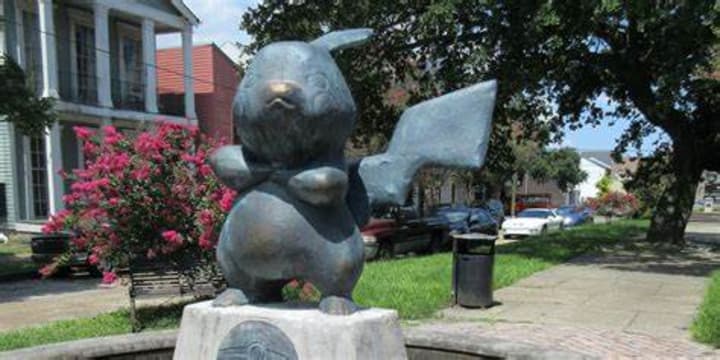 In New Orleans, Louisiana in the Lower Garden District someone set up a giant Pikachu statue right on top of a deteriorating fountain. The statue is 5 feet tall, made of fiberglass, and painted so that it would look like brass. Suddenly people were going to see it and take photos of it. Then just as suddenly as it appeared the statue was gone and a barcode was left in its place. If you scanned the code on a Smartphone it took you to a site that explained that the Pikachu statue wasn’t meant to be permanent. Further, it said that they donated the statue to the Coliseum Square Association to be auctioned off to help gather funds for the restoration of fountains in the park.