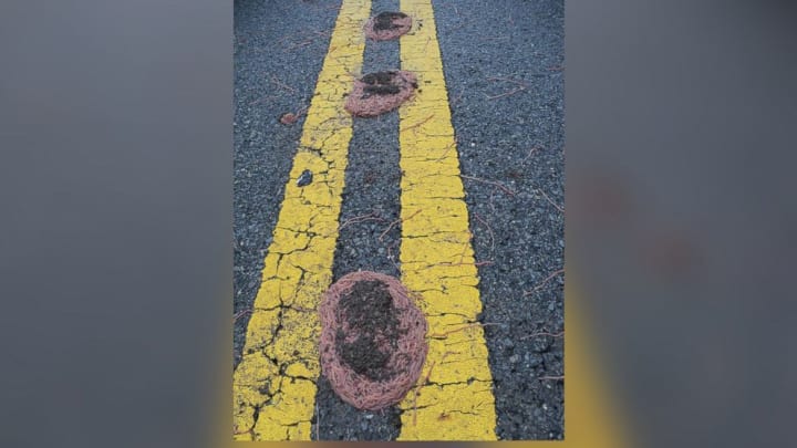 I think in this case worms were trying to form a conga line but had no music. There was a flood in Eisenhower State Park in Denison, Texas and afterward, rangers were surprised to see long pink worms in clumps in the middle of the road. However, these worms were not just haphazardly in the road they were right on the yellow lines.
