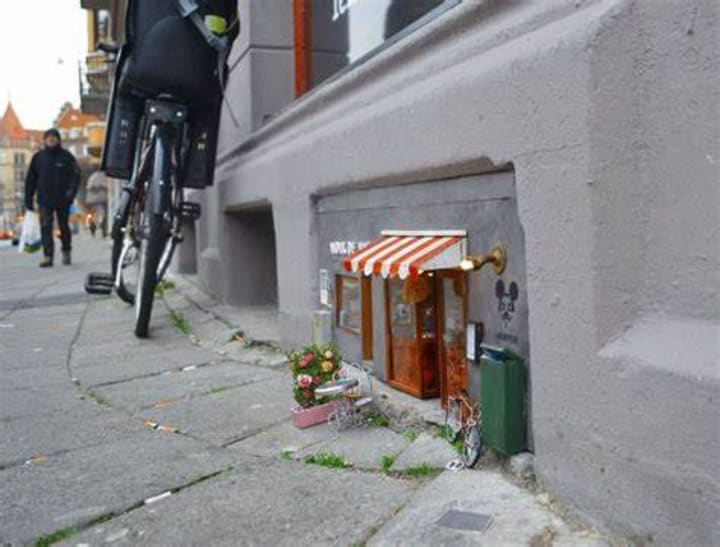 In the neighborhood of Mollevangen in the small town of Malmo, Sweden a group of artists created two mini storefronts as restaurants for mice. Perhaps mice were interested. They called themselves Anonymouse MMX and thought that these would catch attention and look charming.