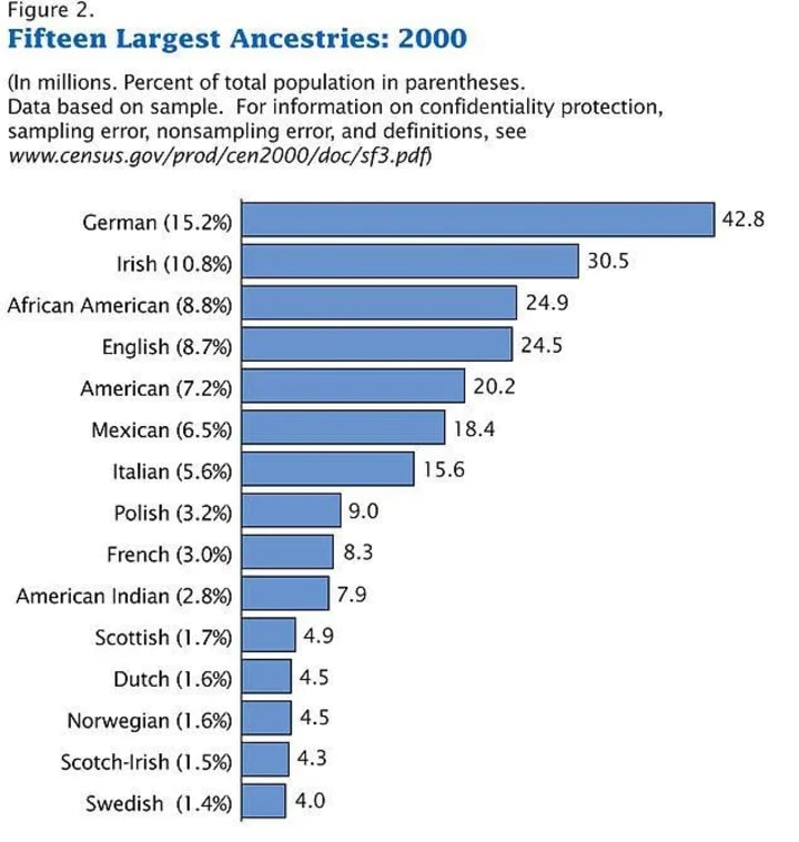The view that German descent is the number one ethnic group in the United States has been questioned by some netizens. This is because some internet users believe that the number of people of British descent is number one. After all, they count Irish descent among British descent. The total number of people counted in this way would indeed exceed the number of people of German descent.
