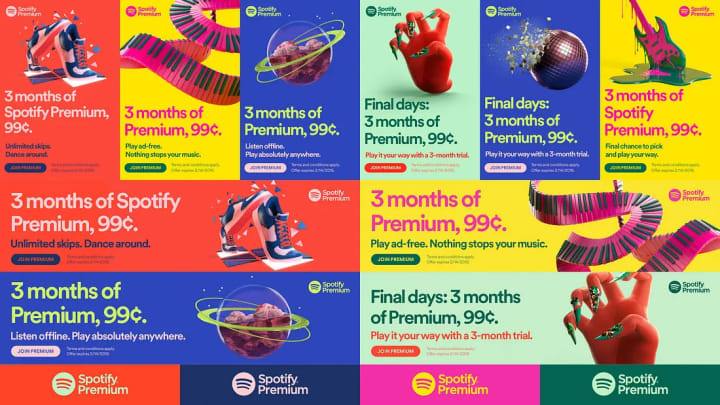 The campaign relied on 3D visuals to establish a cohesive brand identity that resonated globally. By utilizing advanced 3D design techniques, Spotify ensured consistency in its branding across diverse markets while adding nuanced details that spoke to each region's unique preferences. The visuals were crafted to attract attention and foster an emotional connection, showcasing Spotify Premium as a product tailored for everyone.