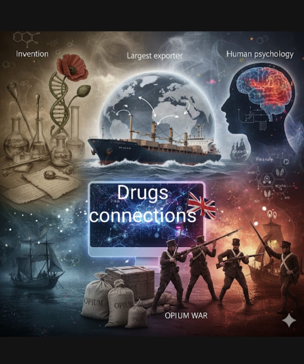 this Article is about who invented drugs and cocaine, human psychology related to drugs , role of drak web , Opium war , how people get addicted to drugs, and largest exporter of drugs.