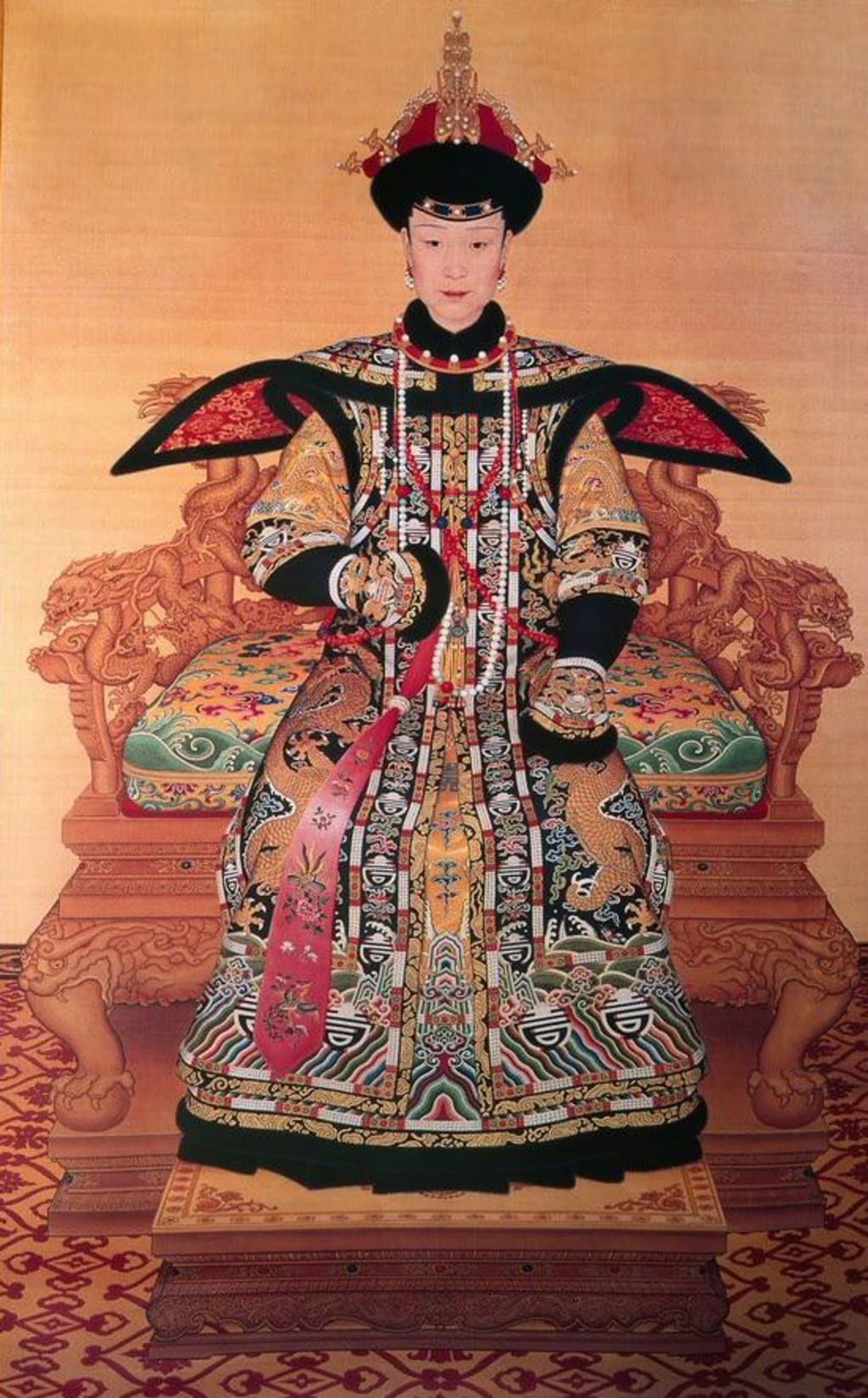 The Empress and Royal Concubines were the only females allowed to wear “Phoenixes.” This symbolic animal was ‘exclusive’ to the Empress and the Royal Concubines and the more “Phoenixes” embroidered on the dress and crown, the higher the rank. This was a way of knowing ‘who was who.’ The Empress herself would wear rich robes and elaborate head-dresses, and also had a “cape covered with 3,500 canary-egg-sized pearls, secured by jade clasps.” Her jewellery was exquisite --- pearl and jade bracelets with jade rings --- with long gold fingernail protectors on the little and ring fingers.