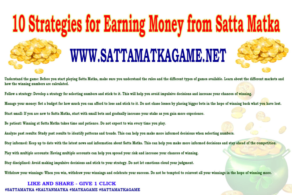 Satta Matka is a form of lottery that originated in India and has gained popularity worldwide. It involves guessing the correct number from a range of numbers and winning a prize if the guess is correct. While Satta Matka can be an exciting and potentially lucrative game to play, it is important to approach it with caution and responsibility. Here are 10 strategies that can help you earn money from Satta Matka and 5 frequently asked questions.