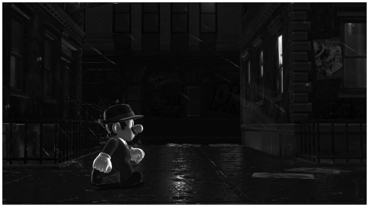 Bonneton (and presumably the Cap Kingdom at large!) is monochrome already, but I find it really suits the black & white filter in Snapshot Mode. Mario seems wistful after the conclusion of the game's story in this photo, though I won't explain why if you haven't played yet!
