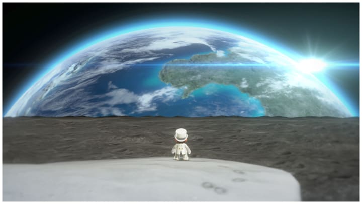 Mario considers the great blue marble he hails from en route to ruining Bowser's sham wedding.