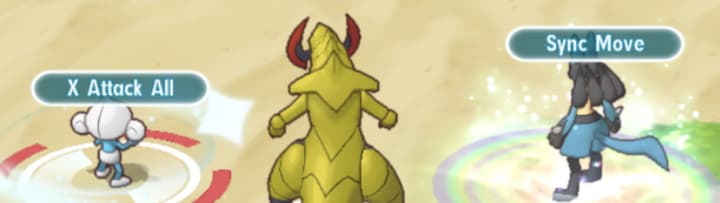 Be really careful with this advice, however! Everyone in the middle position can use their sync move, including the sync pair before the main adversary—so spending too much time on the sides can cause an opposing sync move against you. If you are a good level for the battle, it shouldn't be much problem to take out the sides in two moves or less. If you can't do that, then it's going to be a really tough battle because pairs in the middle are going to be even stronger.