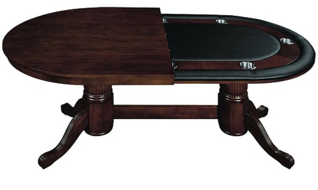 If you are looking for the best poker table for your home, consider the convertible poker table type. There is no longer a need to purchase an entire table, instead simply convert it to a folding table. This round folding poker table is easily flipped over to allow you to put it in any location. The table top usually has six drink holders with big chip trays and multiple pockets.