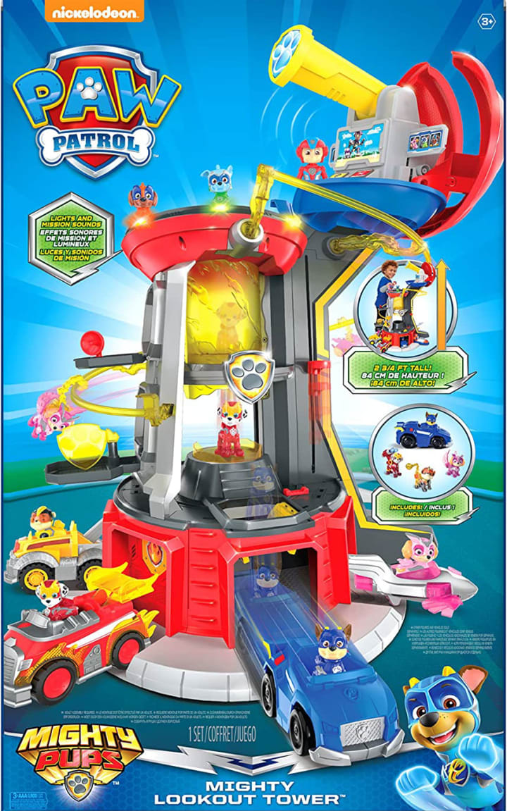 * The Paw Patrol Mighty Lookout Tower is a large playset that stands at over 2 feet tall, providing plenty of room for imaginative play.