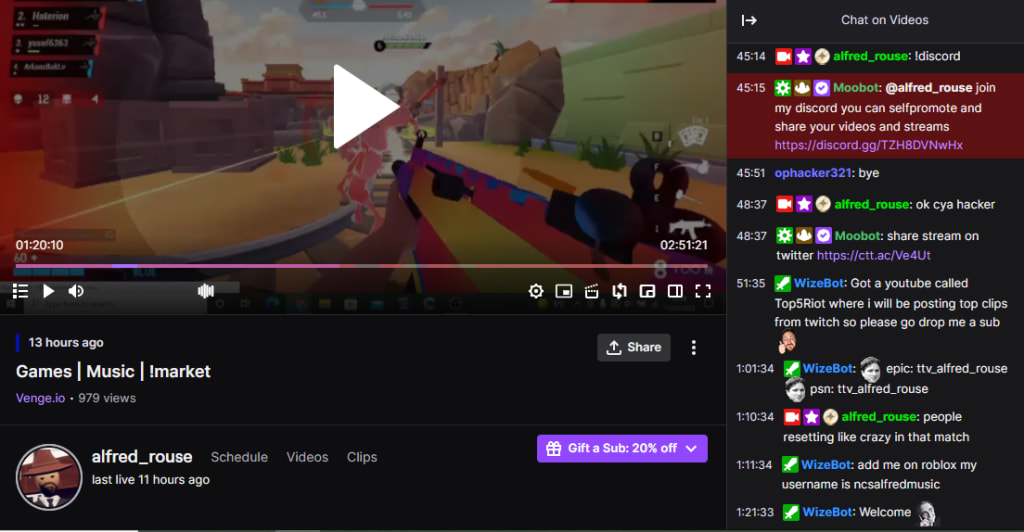 Alfred beleives that if he keeps his past streams , available then this makes it easier for twitch viewers to find his channel on the explorer page for the game he played that day, he is not wrong when he goes offline atleast three new people follow him, after he has streamed, which means there are people checking out his channel even when he is offline.
