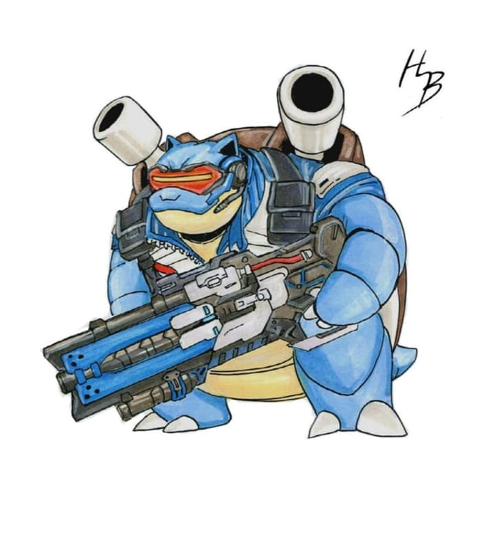 If there's any time I'd be fleeing across Watchpoint: Gibraltar, it'd be when seeing a Blaster-76 coming my way. If there was anything like a Pokémon in the Overwatch universe, it'd be a #Blastoise with Soldier-76's abilities coming my way and locking on his water cannons.