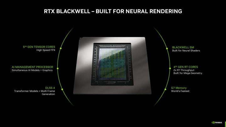 - Neural Rendering Cores specifically designed for inference tasks like DLSS, RTX Video, and generative media.