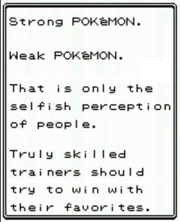 Even if your Pokémon don’t have the best stats, it’s still possible to play the game. I’ve found the game more enjoyable playing with your favourite Pokémon. This is how the games were meant to be played. Elite Four member, Karen even has this to say when you beat her: