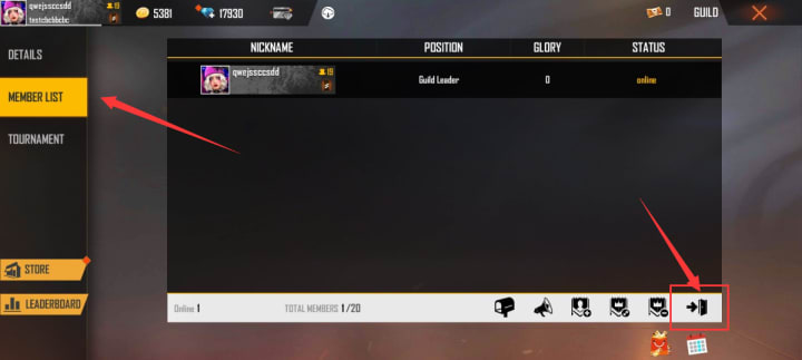 - Open Free Fire and go to the Guild section.