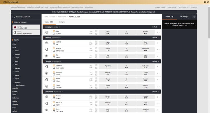 Spain vs Germany. These two European giants have dominated World Cups over the years. They might now be in transition, but this looks set to be a terrific game on November 27. The BTi Sportsbook rates Spain as a slight favourite, at 2.43. But betting on the draw at 3.29 might be the play here.
