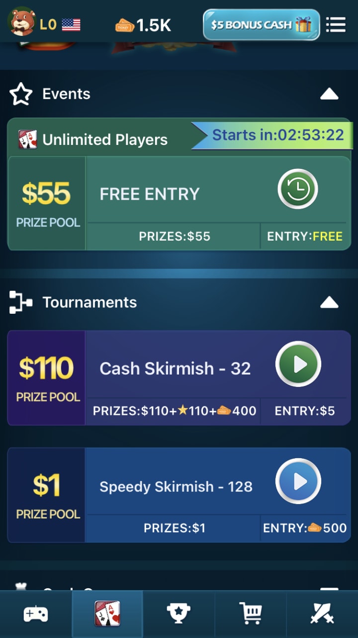 The App uses Tickets as an in-game currency which allows you to play games once you earn enough, you can then redeem them for bonus cash. You can then use your bonus cash to enter cash games that can reward real money.
