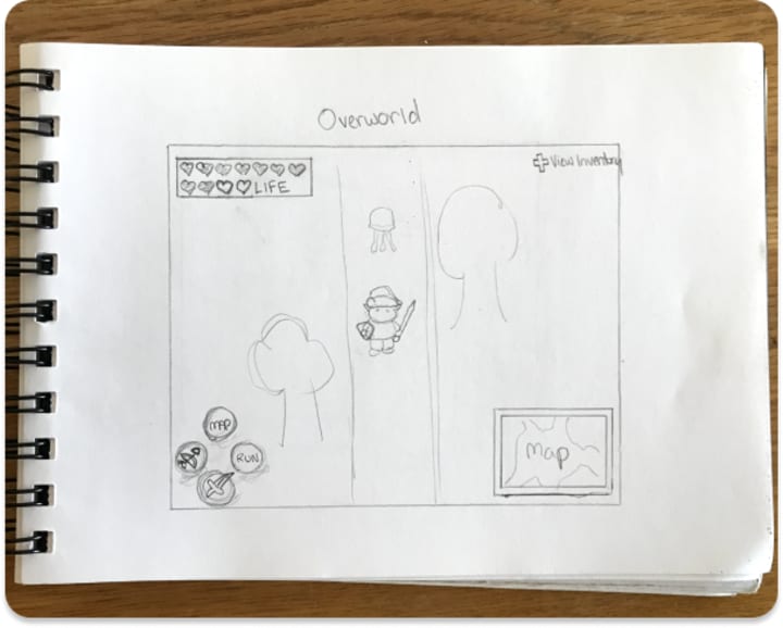 I sketched out my ideas in my sketchbook to get a rough idea of how each screen would look.