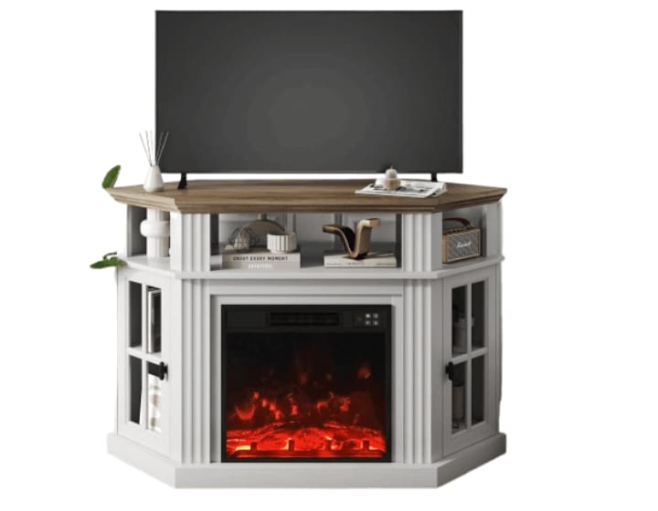 The Furmax offers a balanced mix of elegance, practicality, and comfort. Its corner-friendly design, remote-controlled fireplace, and antique white finish make it a versatile choice for a variety of interiors. Whether you’re upgrading your entertainment setup or furnishing a new home, this piece delivers warmth, style, and smart storage in one compact package.