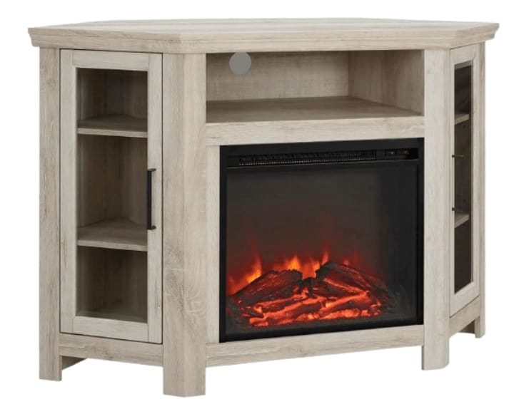 - Walker Edison Alcott Classic Glass Door Fireplace Corner TV Stand
