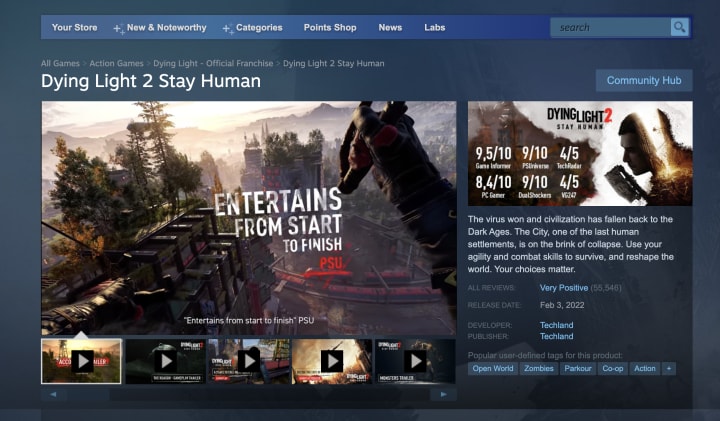 Dying light 2 is a solid 6/10 in my book. It is a fun zombie game but it is far from some of the reviews left on its accolades trailer.