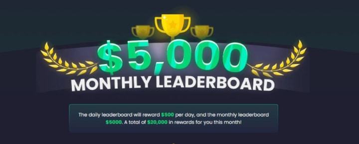 The daily leaderboard allows you to win up to $500, and the monthly leaderboard allows you to earn up to a whopping $5,000!
