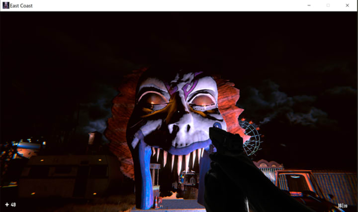 You arrive at a dimly lit carnival, the joyous screams of children echoing throughout the grounds. They’re broken for a moment by the horrifying grunt of your first assailant. A clown, demented and twisted by whatever supernatural horrors await, swipes at you. Your only escape is through the ominous facade of a clown’s head, its teeth sharpened and its eyes glowing under a neon hue. Rushing through its mouth, you hope to escape the monstrosity at your heels, unaware that you’ve run right into your very own East Coast Nightmares.