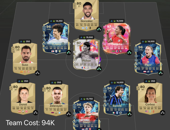 To unlock the 97-rated FUTTIES Vitinha card in FC 25, you'll need to complete 12 challenges. The cost is around 734K coins, and the SBC will expire in 7 days.