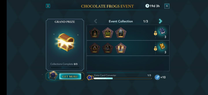 Although there have been consistent events going on through the years, a new event has been added: the Chocolate Frog Event. A Chocolate Frog has a character portrait on them with a character's fact behind it. Aside from the rewards aspect, these characters are based on Harry Potter's story making it more interesting. As you can only earn them if you complete a task, it motivates me to finish the tasks.