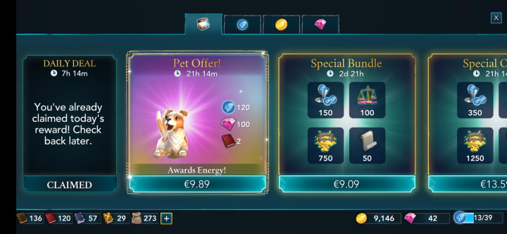 You can buy energy points using your gems or buy clothing, accessories, and furniture with coins, gems, notebooks. Additional gems, coins, and energy bundles which sometimes even include outfits are available to buy with real money. But, the great thing about the game is that it doesn't force you to do that. Instead, it provides some different free options that you can choose from. For example, the energy bar limit increases over time as you complete tasks. There are numerous secret collection spots to earn gems, coins, creature food, and energy points. Some examples include tapping on a house-elf in the dungeon, tapping the snitch in the Quidditch stadium, or tapping the blue outlined objects within the Clubhouses. Other options that you can earn similar rewards every few hours or daily are by watching ads that vary from 5 to 30 seconds.
