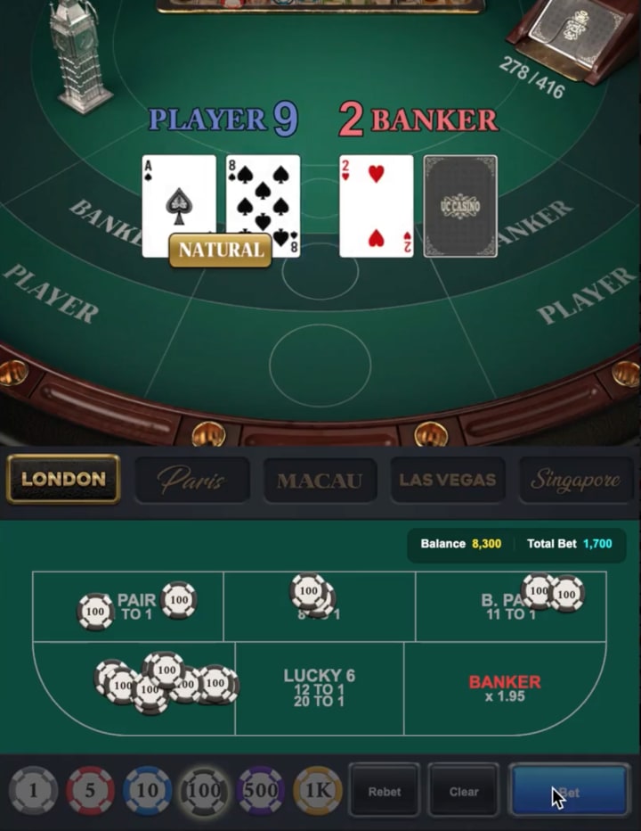 In UC Casino’s Baccarat, players can enjoy in 1 of 5 most famous casino paradises for gamers.