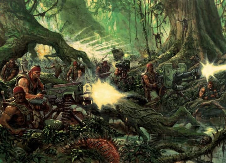 One of the most savage death worlds in the Imperium, Catachan's environment has produced some of the finest warriors humanity has ever seen. Swift, strong, and utterly ruthless, the infamous Catachan jungle fighters are legend among the Astra Militarum. For those who want to bring these troops to their next Pathfinder game, this guide should get you started!