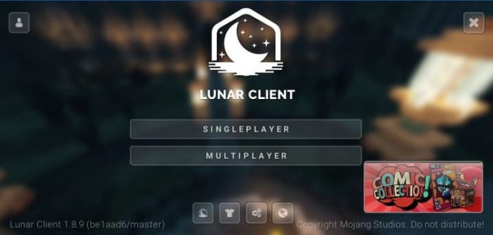 Once this is complete, Minecraft should launch, and the player will see the Lunar Client menu as shown below.
