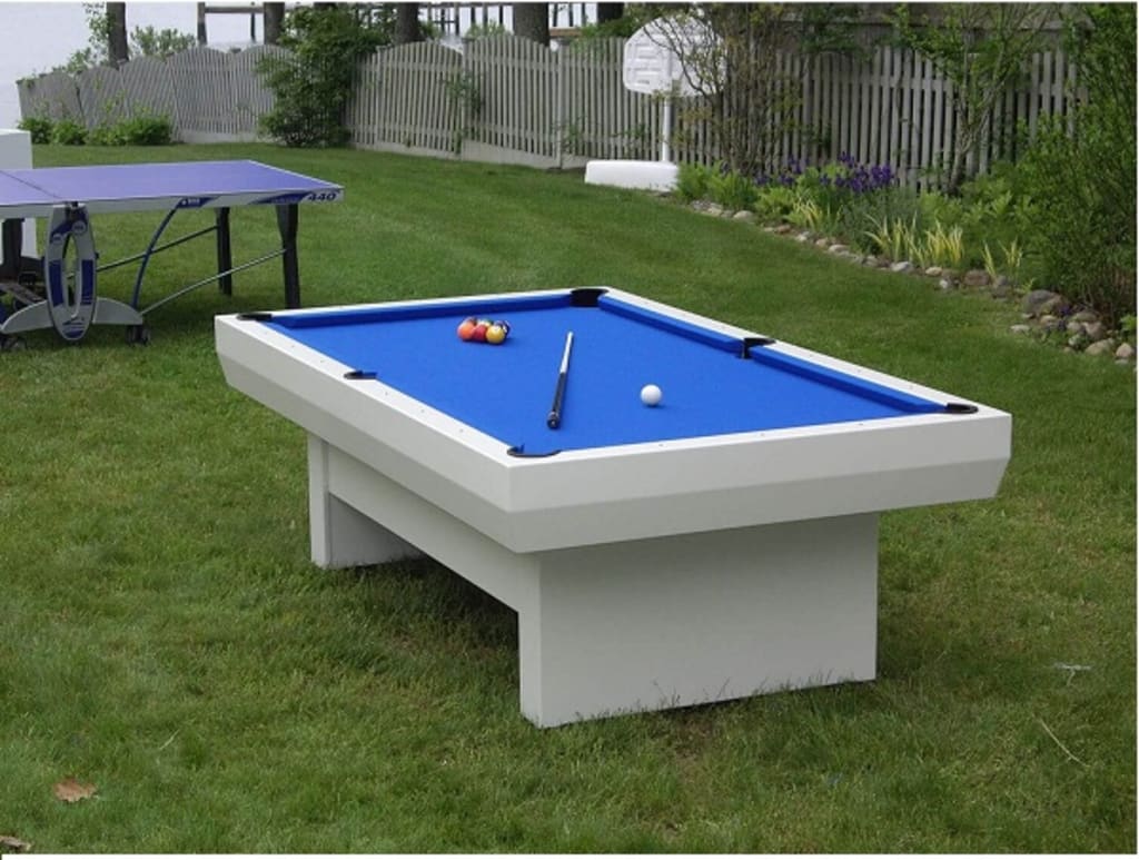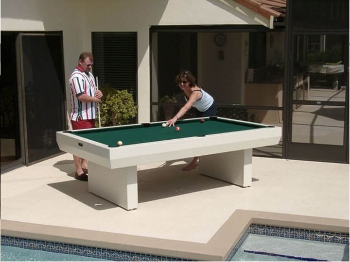 If you are looking for quality in your outdoor pool tables, you should make sure that they are made from solid pieces of slate. This type of material is strong enough to provide excellent support for a table without having to add extra weight to it. The added weight will only cause it to break because of the increased pressure. This means that many years from now, your table will still be functioning properly, and you will be able to play on it for many years to come.
